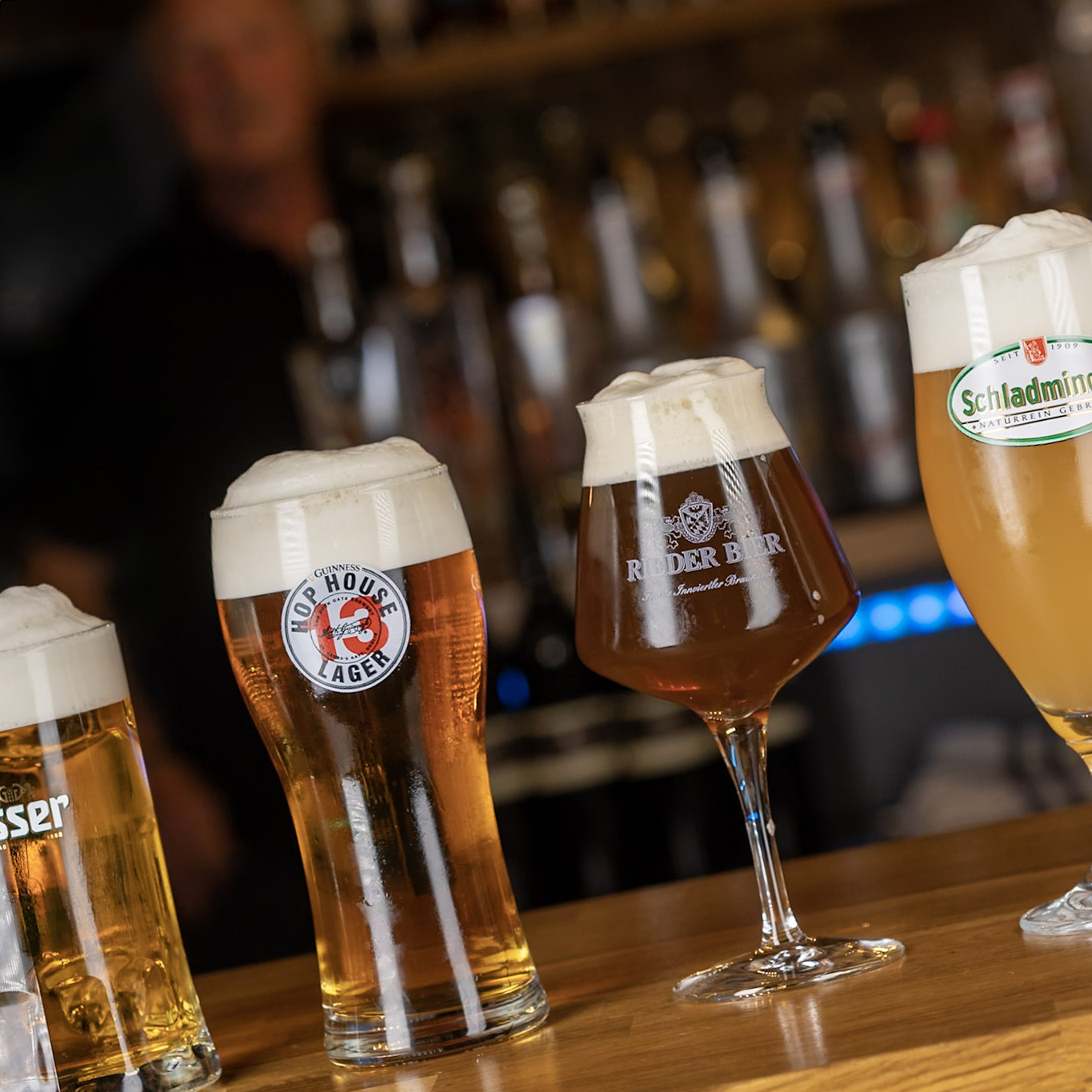 Unsere Bar bietet eine vielfältige Auswahl an Bieren – von hopfig über malzig bis hin zu klassischem Weizen. Für jeden Geschmack das passende Bier.