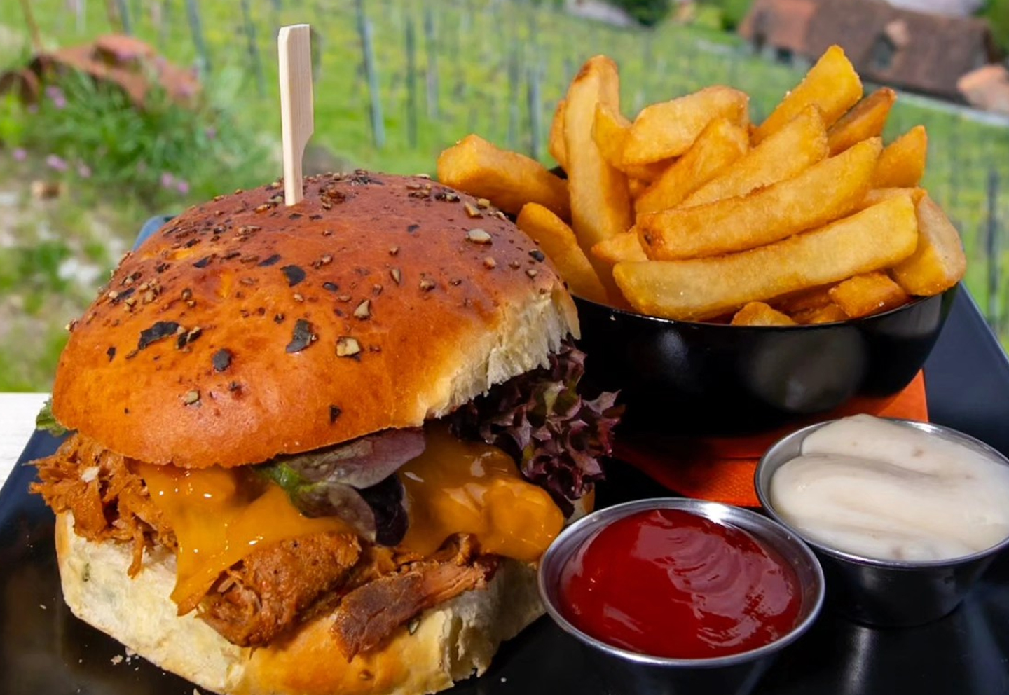 legendäre Burger (auch vegan & veggy), saftige Steaks, Spare Ribs, kreative Bowls, Klassiker mit Twist und richtig starke vegane Gerichte, die selbst Nicht-Veganer feiern.