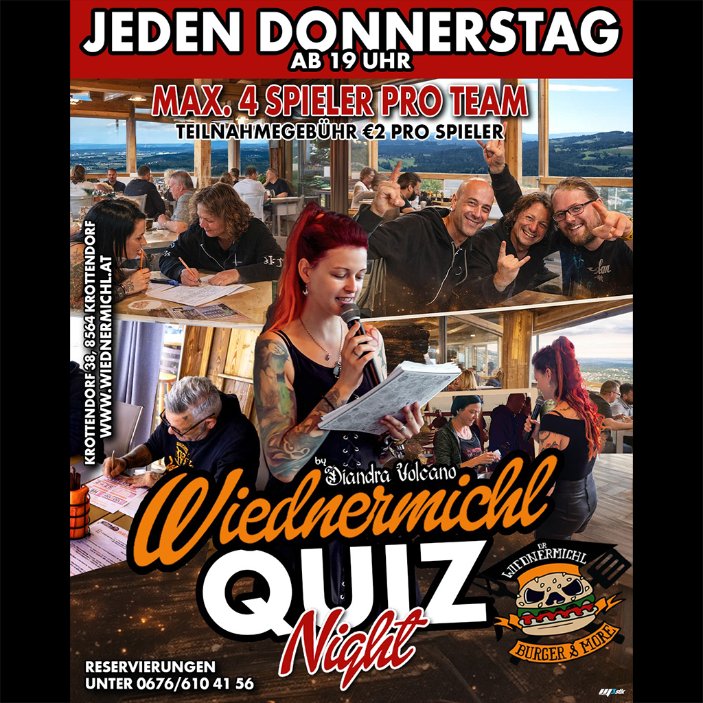 Jeden Donnerstag ab 19 Uhr ist Quiz Night. Bilde ein Team mit max. 4 Spieler und beantworte Diandra Vulcano's Fragen. Es gibt tolle Preise zu gewinnen !